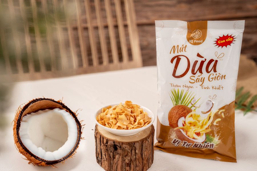 Dừa sấy IQ FOOD: Được chế biến từ dừa Bến Tre nổi tiếng, dừa sấy giữ nguyên hương vị tự nhiên và giàu dinh dưỡng. Đây là lựa chọn tuyệt vời cho những ai yêu thích hương vị đặc trưng của dừa.